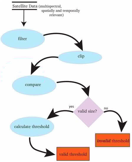 Here, a new algorithm is introduced that extracts geostationary satellite data for a relevant biogeographical region, for the current day and the 28 days preceding. Dynamic thresholds are calculated using full or partial samples depending on the variable being investigated. The thresholds are then used to determine active fire hotspots (see Figure 1 for an overview of the modified BRIGHT algorithm).