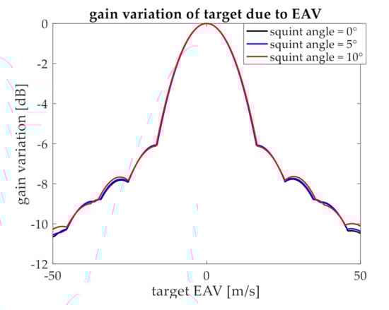 Gain variation of target caused by EAV. For isotropic target, gain variation is dependent on EAV and independent of squint angles.
