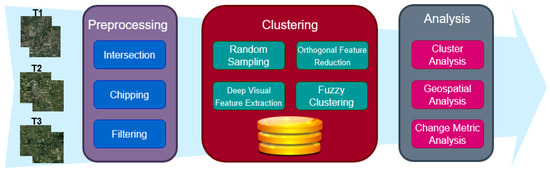 - Three analysis methodologies are introduced: cluster analysis, geospatial analysis, and metric change analysis. To successfully analyze the varied resolution images, that may be misaligned, change in the sub datasets is computed at the chip level using a neighborhood approach.