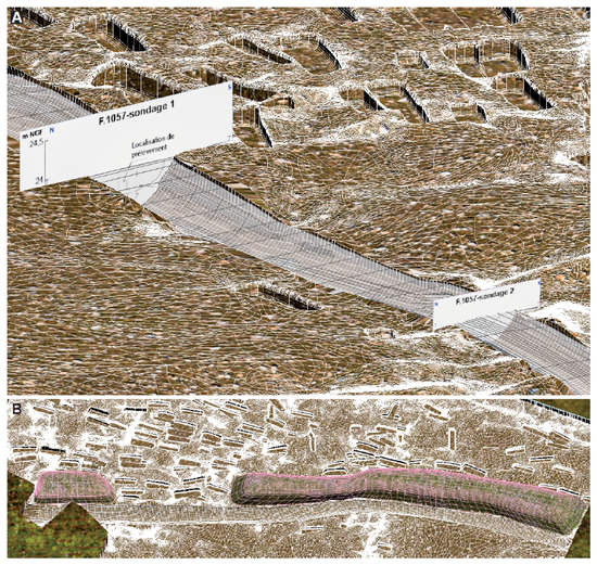 Many major archaeological discoveries are now made using digital terrain models (DTMs), often based on surveys derived from LiDAR scans that allow the observation of remains hidden under dense vegetation [1,2]. This work generally covers large areas and allows a proper diagnosis of monumental remains, as the identification of small structures [3], or even hollow structures, can be problematic. These approaches are interesting in areas that are difficult to access and with a high forest cover, such as the Mayan rainforests [4] or the mountains of China [5]. Archaeology also exploits images taken from aircraft for decades, or more recently from drones, to detect buried structures [6,7]. At the scale of preventive archaeological excavations, limited to land development projects, the range of remote sensing methods is mainly based on topographic surveys of structures to create DTMs with databases and GIS. These analysis tools are powerful, but still little used, especially for the 3D reconstruction of burial sites.