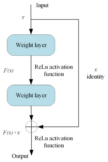 In Figure 3, is the input, is the residual mapping, and the rectified linear unit (ReLu) [23] is the activation function. The ReLu activation function is defined as
