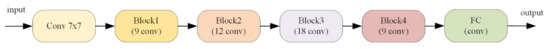 In this study, we adopt ResNet50, whose residual network depth is 50. It is composed of multiple residual blocks. Figure 4 depicts its overall structure.