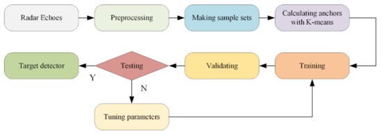 Flowchart of the target detection of the coastal defense radar based on the Faster R-CNN.