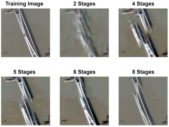 Effect of training with different stages by the improved SinGAN.