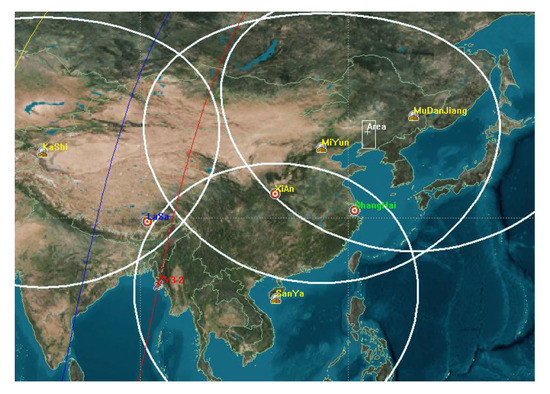 Taking the movement track of the large oil tanker passing through the western Pacific Ocean to the East China Sea as an example, this paper compares and analyzes the observation by using resources satellite alone and the observation by using resources satellite and GF series satellites at the same time. The differences in the total number of target observations, the maximum revisiting time interval, the minimum revisiting time interval, the average revisiting time interval, the total observation time of the target, and the whole observation capability under the two conditions illustrate the improvement of the remote sensing observation capability of satellites, such as high score series to moving targets, as shown in Table 6. Target observation is shown in Figure 5 and Figure 6.