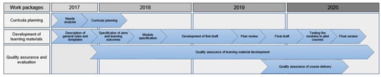 For the easy use of the modules, there is always a short course description at the beginning. This includes the objectives, the intended learning outcomes, a concise content, learning and teaching methods, and assessment. The learning material developers were developing their own module specifications. This process required a cross-functional implementation. In the design of the detailed content, a competency matrix was used to help the harmonization of the work.