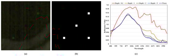 - Gillis, D.B. Detection of underwater objects in hyperspectral imagery. In Proceedings of the 2016 8th Workshop on Hyperspectral Image and Signal Processing: Evolution in Remote Sensing (WHISPERS), Los Angeles, CA, USA, 21–24 August 2016; pp. 1–5. [Google Scholar]