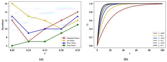 The results of hyperparameter analysis experiments. (a) The relationship between and the number of convergence iterations; (b) The function curve of dynamic threshold with different .