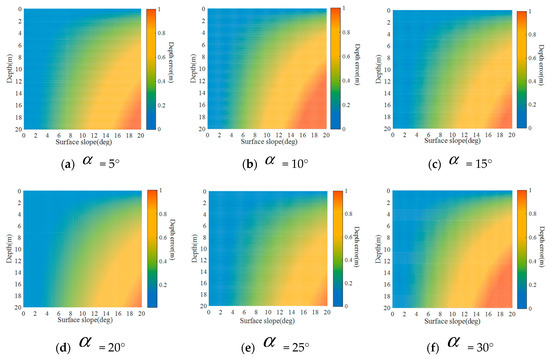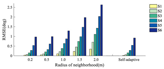 According to the relevant values in Table 1 above, although the average value of the elevation gradient of each simulated surface in the east and north directions is different because S1~S6 are simulated mainly by the Gaussian function, the root mean square errors are relatively close in numerical value, and the complexity of the surface elevation gradually increases with the increase in surface amplitude parameters.