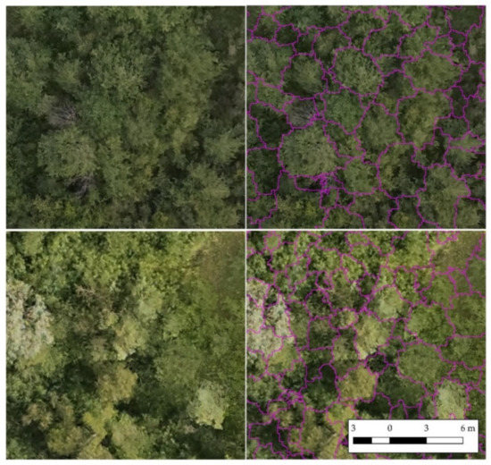 - Yurtseven, H.; Akgul, M.; Coban, S.; Gulci, S. Determination and Accuracy Analysis of Individual Tree Crown Parameters Using UAV Based Imagery and OBIA Techniques. Measurement 2019, 145, 651–664. [Google Scholar] [CrossRef]
