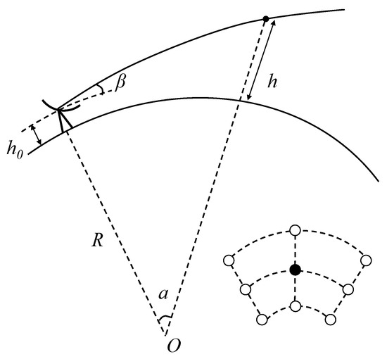 where R is the radius of earth (R = 6371 km) and h is the height of the radar beam from the ground. In the standard atmosphere, dn/dh is taken as −4 × 10−8 m−1, and Equation (1) is simplified as R′ ≈ 4/3 R. Therefore, the number of radial gates corresponding to each scan layer can be calculated as: