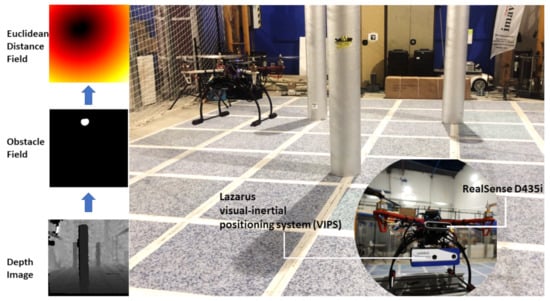 Recently, unmanned aerial vehicle-based remote-sensing technology has been widely used in areas such as object detection and tracking [19], search and rescue [20], and industrial inspection [21]. The presented collision-avoidance approach can help unmanned aerial vehicles perform autonomous remote-sensing tasks without collision. In the proposed method, the laser/depth camera-based sensing technology is also applied when extracting the Euclidean distance field.