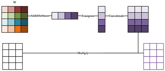 The time sequence enhancement process uses the weight matrix obtained from the inter-block self-attention process. Figure 10 shows the process.