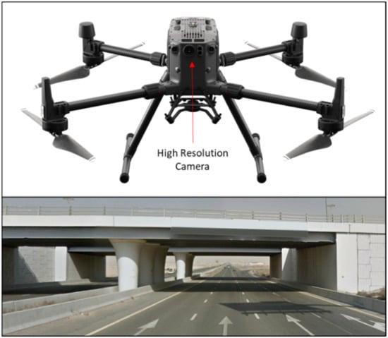Non-destructive analysis using UAVs have been gaining momentum for bridge monitoring in the recent years, particularly due to improved accessibility and cost efficiency, avoidance of traffic closure, as well as reduced safety hazards during the inspection process [,]. They are often deployed in instances where the infrastructure has limited accessibility, characterized by their height and/or location. Several industries, including defense, transportation, archaeology, and precision agriculture, have adopted UAVs for practical applications, whereas industries like structure and construction have only recently begun to realize the prospects of UAVs in engineering applications [].