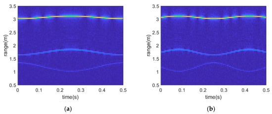 The range–image of the targets. (a) The precession rate is ; (b) The precession rate is .