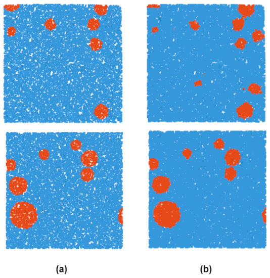 This study selected a total of 80 Chang’E DEM images with 50 m resolution covering 28 S 28 N area to make a point cloud dataset composed of 80 point clouds, and only small impact craters less than 3000 m in diameter are included in the dataset. Besides, 40 point clouds were randomly selected for the training, and the remaining 40 point clouds data were selected for the testing. Each point cloud has up to points, covering up to 500,000 × 430,000 × 20,000 m in moon 3D space.
