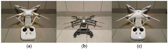 Equipment used during UAV flights (a)—DJI Phantom 3 PRO, (b)—DJI Mavic 2 PRO, (c)—DJI Phantom 4 PRO).