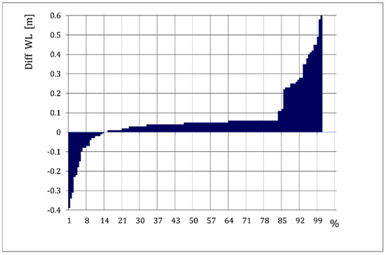 The percentage distribution of the differences of the water table level readings determined by the compared methods is shown in Figure 11.