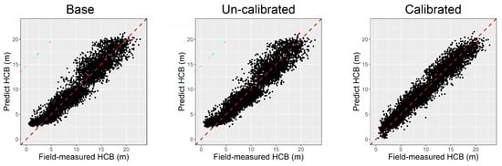 The mixed-effect model’s calibration was calculated using the field-measured HCB of some multiple sample trees as the prior information to predict the specific random-effects parameters. Therefore, we proposed multilevel prediction (both site- and plot-level), which is convenient for application across different scales yet still provides a high accuracy [76].