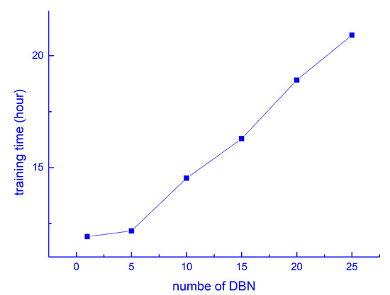 The influence of DBN numbers on performance of training time.