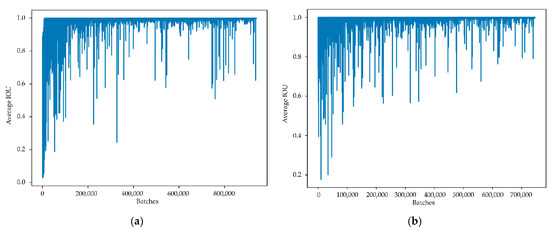 In order to show the stability of NDFTC during the training process from another perspective, the changes of region average IOU are also visualized in Figure 3. Region average IOU is the intersection over union (IOU) between the predicted box and the ground truth [22]. It is one of the most important indicators to measure the stability of models in the training process, and is commonly found in deep learning models such as YOLOv1 [22], YOLOv2 [23], YOLOv3 [24], and YOLOv4 [56]. In general, the closer it is to 1, the better the model is trained.