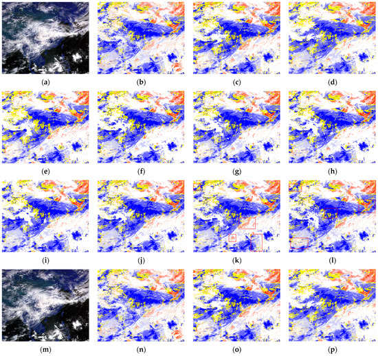 CRMSCD contains FY-4A daily images and corresponding Himawari-8 labels at 3:30 and 4:30 from 1 January 2020 to 31 July 2020. We select the data at 4:30 on 10 July 2020 to present the visualization results of our dataset. The meteorological satellite cloud image and the corresponding label are shown in Figure 3.