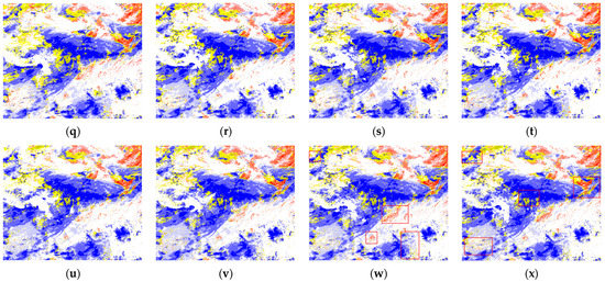FY-4 satellite is the second generation of China’s geostationary meteorological satellite series used in quantitative remote sensing meteorology, with greatly enhanced capabilities for high-impact weather event monitoring, warning, and forecasting. Following on from the first generation, it offers several advances over the FY-2 [41]: detection efficiency, spectral band, spatial resolution, time resolution, radiation calibration and sensitivity [42]. It is equipped with multi-channel scanning imaging radiometer, interferometric atmospheric vertical sounder, lightning imager and space environment monitoring instruments. The scanning imaging radiometer mainly undertakes the task of obtaining cloud images. AGRI, a key optical sensor on FY-4A, has 14 spectral bands (increased from five bands on FY-2) and has significantly improved capabilities for cloud, convective system, land surface, environmental observations, and even data assimilation [43]. FY-4 not only observes clouds, water vapor, vegetation, and the land surface, just as the FY-2 can, but also has the ability to capture aerosols and snow. It can also clearly distinguish between different cloud forms and high/middle water vapor. Different from the limitation of the single visible light channel of FY-2, FY-4 generates color satellite cloud images for the first time, ideally generating regional observation images in one minute. In dataset construction, we select 4KML1 data of the China region taken by the imager of FY-4A satellite L1 data product. The band, spatial resolution, sensitivity, and usage of different channels are presented in Table 1, where = reflectivity, S/N = signal to noise, NEΔT = noise equivalent differential.