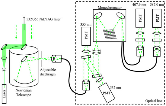 The system design parameters are summarized in Table 1 with the system layout depicted in Figure 2 below. In the daytime, the sky background radiation in ultraviolet wavelength range is much weaker than that in the visible wavelength range. Under extremely high-atmospheric extinction conditions this lidar can still obtain aerosol profiles with high signal-to-noise ratio.
