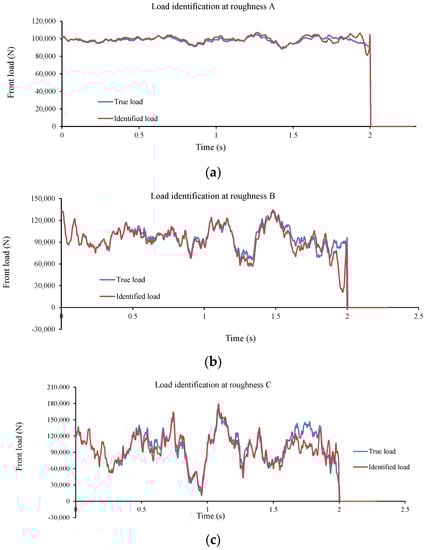 The dynamic interaction force between vehicles and road surface can be intensified by structural damage, road surface roughness and vehicle speed. Therefore, it is of high importance to simultaneously identify moving loads and structural damage while considering road surface roughness. Although there have been extensive attempts to identify moving loads with known structural parameters [,,,,,], or to identify structural parameters subject to non-moving loads, moving masses or knowing moving loads, their simultaneous identification has not been studied enough [,,,,,].