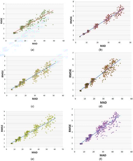 Table 3. Nevertheless, in these tables, the dependence of the mean value of MAD (also, RMSE, PSNR, and CR) and its deviation on UBMAD is provided. Moreover, it is shown that a high percentage of values obtained experimentally belongs to segments [E −