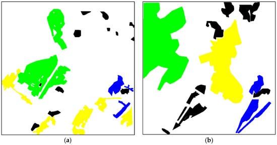 Figure 18. For MAD = 16, there are many misclassifications (the pixels that belong to the class Water are related to the class Urban and shown by yellow color). The class Urban is recognized with approximately the same probability of correct recognition P