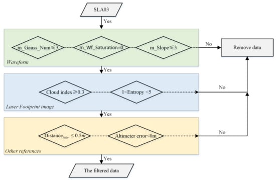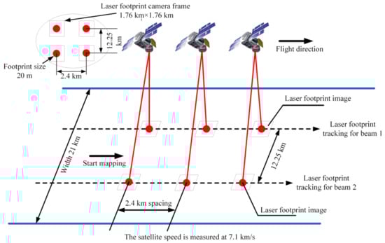 Satellite laser altimetry, a subclass of spaceborne Light Detection and Ranging (LiDAR), has developed into a novel Earth observation technology. It has received significant attention due to its capacity to obtain sub-meter or even centimeter-scale elevation measurement accuracies [,]. In 2003 and 2018, the National Aeronautics and Space Administration (NASA) launched the ice, cloud, and land elevation satellite (ICESat) and ICESat-2, which have yielded several scientific achievements regarding changes in polar ice sheet thicknesses, global tree heights, biomass inversion, global elevation control point acquisitions, and lake water level monitoring [,,]. ICESat-2 is equipped with an advanced topographic laser altimeter system (ATLAS) that uses a new photon counting system. Furthermore, the number of beams and laser spot density have been improved compared to those of ICESat [,]. In 2018, NASA launched the Global Ecosystem Dynamics Investigation (GEDI) LiDAR system, which was successfully deployed on the International Space Station (ISS) []. GEDI is predominantly used to obtain surface elevations and vertical forest structures in tropical and temperate regions. In 2016, China launched the ZiYuan-3 02 satellite [,], which was equipped with an experimental laser altimeter, which led to subsequent satellite development. In November 2019, China launched the first sub-meter optical transmission stereo mapping satellite, GaoFen-7 (GF-7) [,], which was equipped with a laser altimeter to obtain elevation control points and assist with stereo mapping of double-line array images. In addition, China plans to include a multi-beam linear full-wave laser altimeter system on the terrestrial ecosystem carbon monitoring satellite to be launched in 2022.