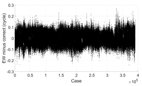 Figure 2 shows the extra-wide lane ambiguity minus correct integer ambiguity, and we can see that most of them are within 0.1 cycle and all are within 0.3 cycle. It can be concluded that single epoch resolution can be achieved with a success rate of 99.999% if the threshold value is set to 0.25 cycle.