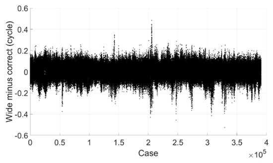 Extra-wide lane ambiguity minus correct integer ambiguity (BDS).
