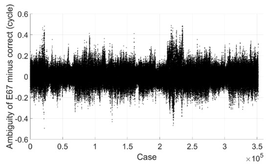 Extra wide-lane E67 ambiguity minus correct integer ambiguity (Galileo).