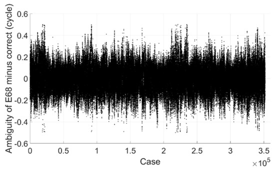 Extra wide-lane E68 ambiguity minus correct integer ambiguity (Galileo).