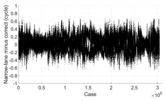 Narrow-lane ambiguity minus correct integer ambiguity (BDS).