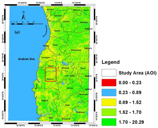 In addition, the same Landsat atmospheric corrected reflectance images in five different times (e.g., 2000, 2015, 2018, 2019, and 2020) were considered to observe the Soil Moisture Content (SMC) of the broad study regions, further narrowly focused on earthquake swarm regions (red bounding box). This has been done by applying Soil Moisture Index (SMI) in each respective image with the given Equation (1) by Dupigny-Giroux et al. [85].