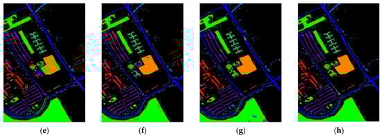 C Pavia University dataset Classification: (a) False color image, (b) Ground-truth map, (c) EPF, (d) IFRF, (e) RPNET, (f) CNN-AL, (g) SS-RMG, (h) Improved-ADL.