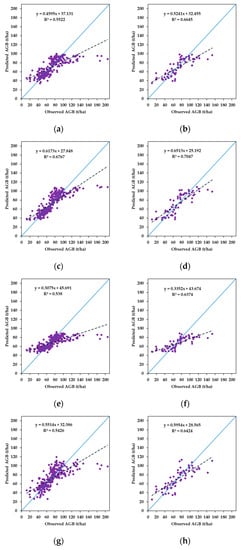 3.3. Comparison of the Estimated AGB Values among the Modeling Algorithms and Wall-to-Wall Predictions