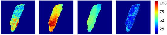 In addition to the quantitative results, Chl-a estimation maps were generated via the proposed method for four dates in 2017 (one from each season) by training with the remaining years’ data (Figure 4).