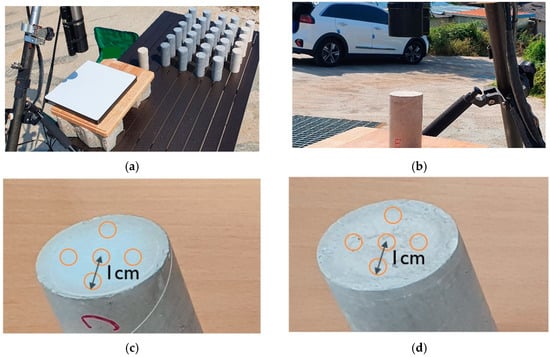 In previous studies, the general mixing ratios of activated carbon for the purpose of reducing harmful substances were 0.01–0.80, relative to the weight of cement, and the mixing ratios of TiO2 were 0.05–0.40, relative to the weight of cement (e.g., [,]). In this study, the specimens for algorithm development were fabricated with activated carbon and TiO2 mixing ratios of 0–0.15 and 0–0.25, respectively, with reference to the mixing ratios of previous studies.