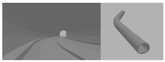 To assess the performance of the proposed inspection path planner, several experiments have been conducted using the Gazebo-based simulation environment RotorS []. The platform model used is the AscTec Firefly multi-rotor equipped with a visual-inertial sensor [], which provides the 3D pointcloud of the environment. The tunnel environment simulated for these experiments corresponds to a section of a real, single-track railway tunnel located in Rome, Italy. The simulated tunnel is long and has a cross-section of . Figure 6 depicts an inside and outside view of this simulated environment.