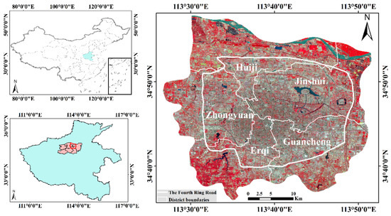 Zhengzhou is the capital of Henan Province, a key central city in Central China and the core city of the Central Plains Economic Zone (Figure 1), which is located in the south of the North China Plain, at the lower reaches of the Yellow River, and north of central Henan Province. There are six districts, namely, Zhongyuan, Erqi, Jinshui, Huiji, Guancheng, and Shangjie. Zhengzhou has developed rapidly in recent years. There are great differences between the new and old urban areas in terms of the concept and spatial distribution of construction projects. In addition, there are significant differences in the landscape visual effect.