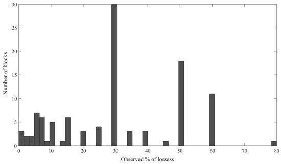 Percentage of yield losses observed by winegrowers on 107 blocks in southern France.
