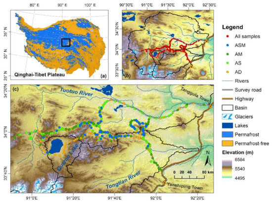 - Zou, D.; Zhao, L.; Sheng, Y.; Chen, J.; Hu, G.; Wu, T.; Wu, J.; Xie, C.; Wu, X.; Pang, Q.; et al. A new map of permafrost distribution on the Tibetan Plateau. Cryosphere 2017, 11, 2527–2542. [Google Scholar] [CrossRef] [Green Version]