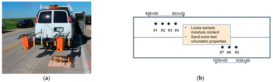 GPR testing vehicle (a) and plane view of the testing site (b).