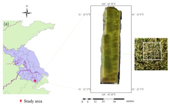 Rice density experiment at Jiangsu Wujiang Modern Agricultural Industrial Park, 2020. (a) Study area. (b) Sampling frame.