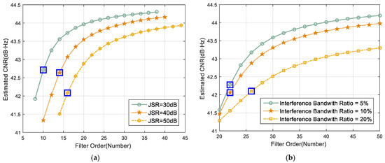 - A higher power interference scenery requires a larger optimal filter order to meet the time-domain adaptive anti-jamming requirements.