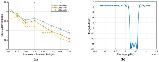 | Interference Suppression | JSR (dB) | Optimal Filter Order | CNR loss (dB·Hz) |